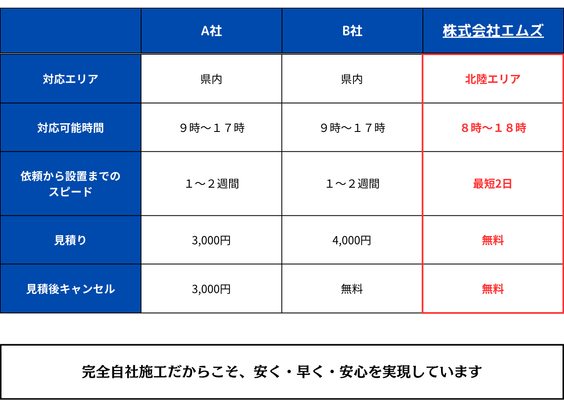 | ※競合他社と料金比較表(自社調べ) スマートフォンでご覧の方はスライドで比較できます。 | |||||