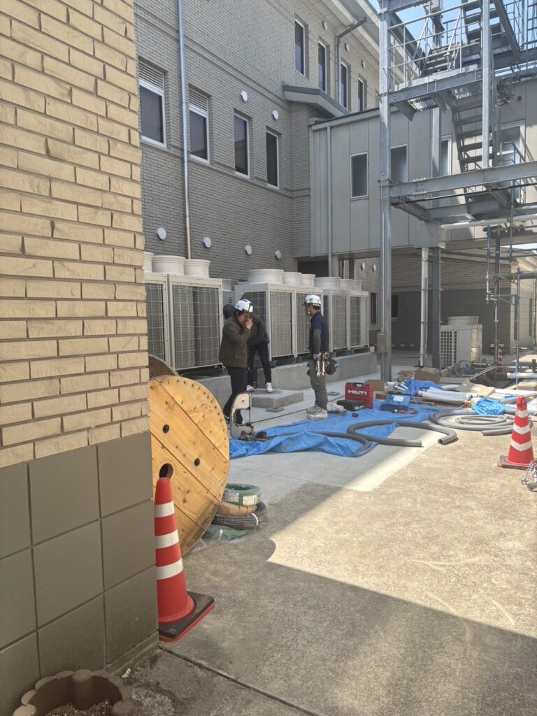 こちらは重量班にて、先行して室外機の据付を行っている際の様子です!